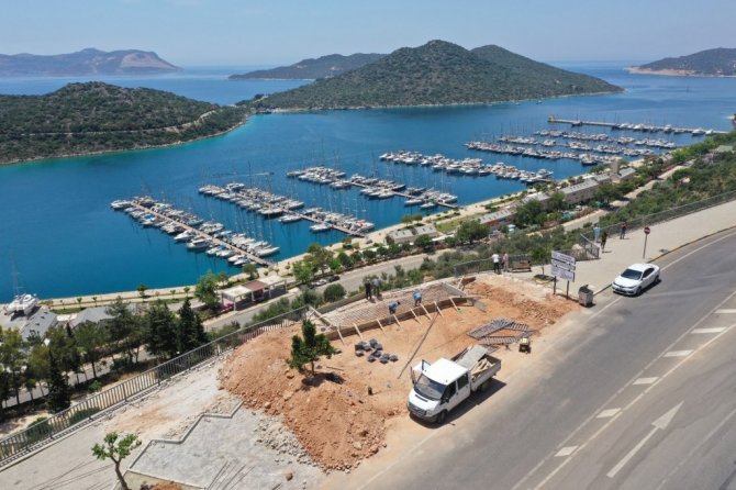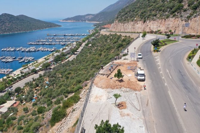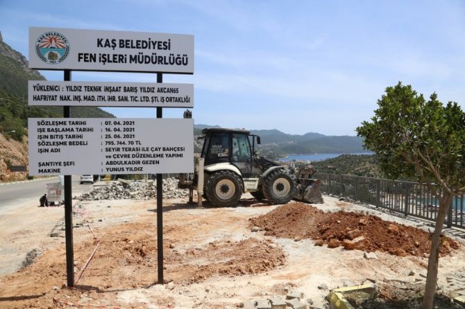Kaş Belediyesinden yapılan açıklamada, doğal güzellikleriyle ziyaretçilerin ilgisini çeken ilçeyi en güzel noktadan seyretmek için Seyir Terası Projesinin yapımına başlandığı kaydedildi.