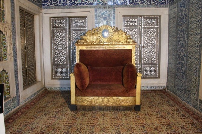 Uzun bir aranın ardından yeniden sergiye çıkan Sultan II. Mahmud’un saltanat koltuğu da dikkat çeken eserlerden biri oldu. Bağdat Köşkü’nde sergilenen 19. yüzyıl etiketli, Avrupai tarzda tasarlanmış, Osmanlı devlet armalı ve II. Mahmud tuğralı taht, tarihi değeri ve estetiğiyle hayranlık uyandırdı.