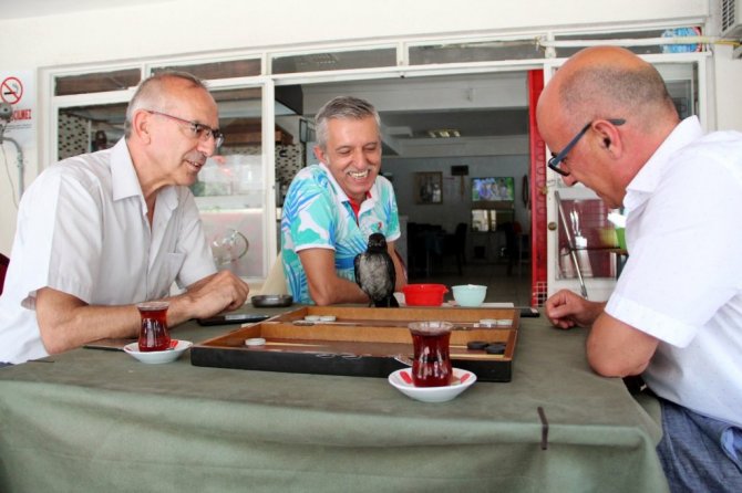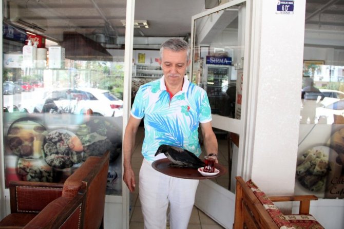 Antalya'da esnaflık yapan Mehmet Sırtıkara, yuvasından düşen bir karga yavrusunu iş yerinde bebek gibi besliyor. Enjektörle su içirilen, kaşıkla beslenen yavru karga, kafenin de maskotu oldu. Masalara yancı olan kargaya müşteriler de büyük ilgi gösteriyor.