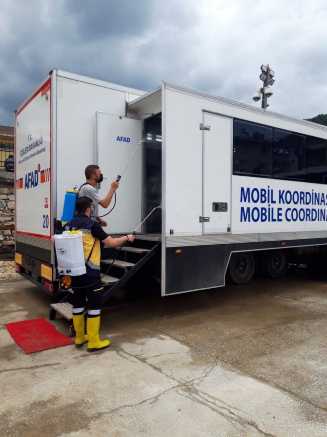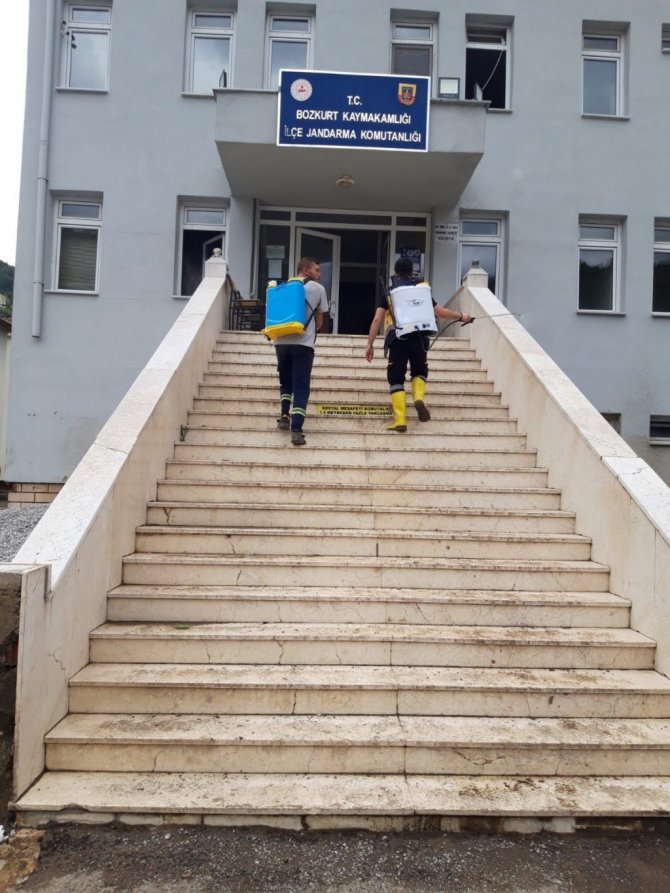 Kastamonu Belediyesi'nin afet bölgesinde başlattığı önemli çalışmalarından bir tanesi de dezenfeksiyon faaliyetleri oldu. Kovid-19 salgınını önlemeye yönelik başlatılan dezenfeksiyon çalışmalarının ülkedeki öncülüğünü üstlenen Kastamonu Belediyesi afet bölgesinde de dezenfeksiyon işlemlerine hızlı bir şekilde başladı.