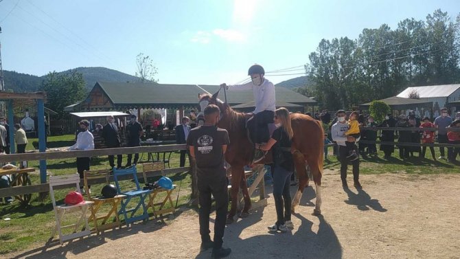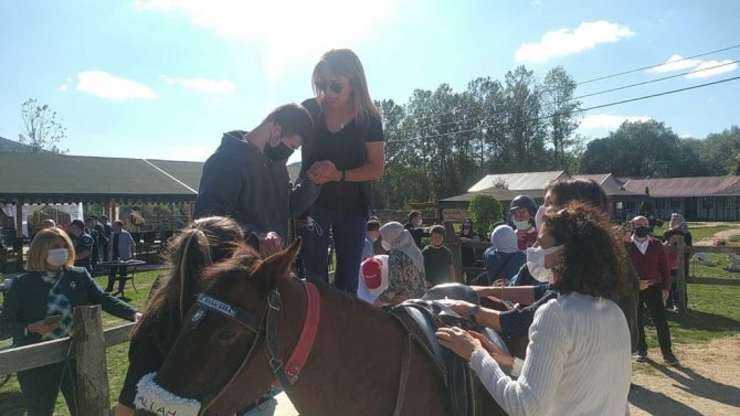 Konuşmaların ardından özel ya da engelli bireyler, atlara binerek bir süre dolaştı. Özel bireylere eğitimciler eşlik ederek at üzerinde çeşitli hareketler yaptırdı.