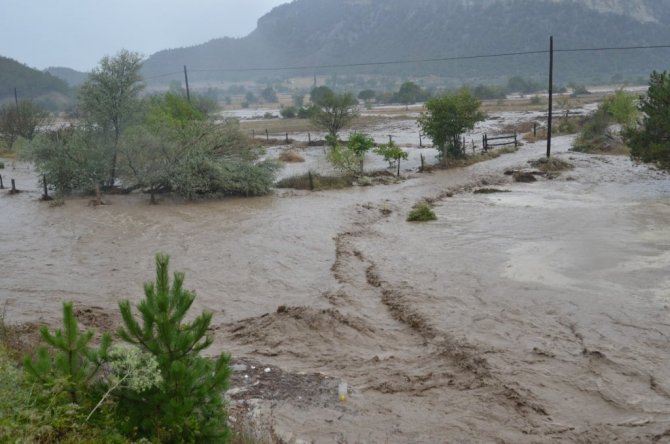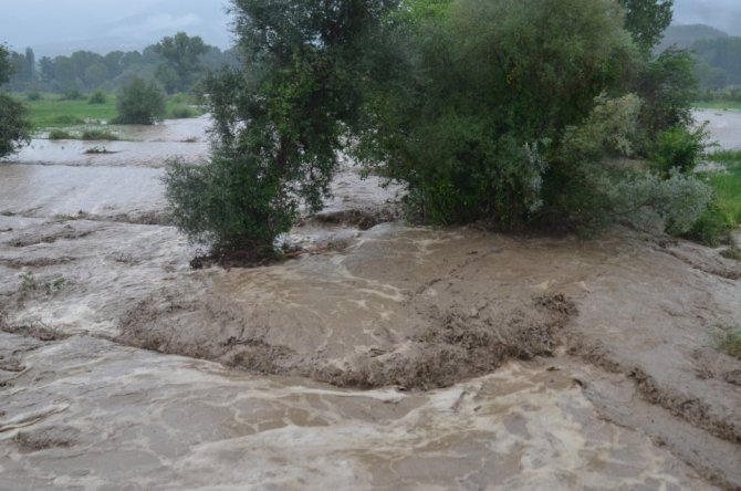 Kastamonu’nun Hanönü ilçesi Gökçeağaç köyünün Gökçeağaç çayının taşması sonucu ekili alanlar zarar gördü