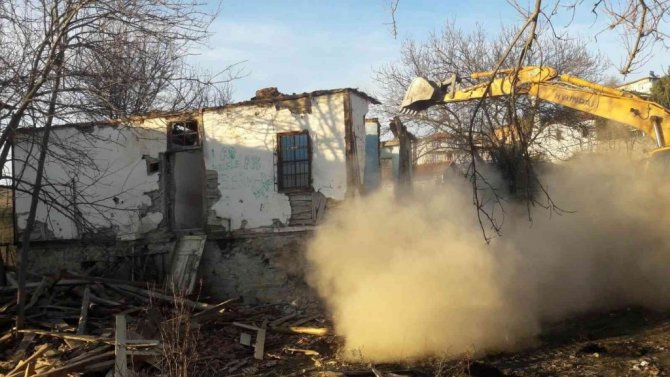 "Gerek bizlerin tespitleri ve gerekse muhtarlarımız ve vatandaşlarımızdan gelen şikâyet ve talepleri de dikkate alarak fen işleri müdürlüğümüz ilçede çevre kirliliğine neden olan boş ve terk edilmiş binaları yıkım çalışmalarına devam ediyor. Metruk binaların kaldırılması ilçemizin görselliğine de katkı sunacak."
