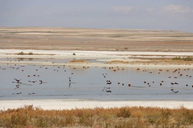 Kavuncu göletinin sular çekilse de angutlar terk etmiyor