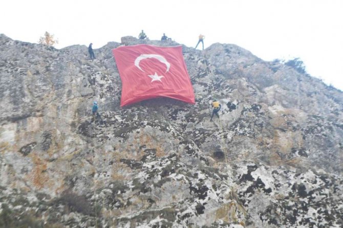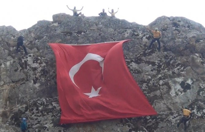 Kayalıklarda dev Türk bayrağı açtılar