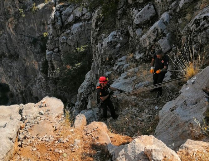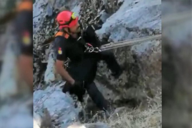 Kahramanmaraş'ta kayalıklarda mahsur kalan oğlak itfaiye ekipleri tarafından kurtarıldı.