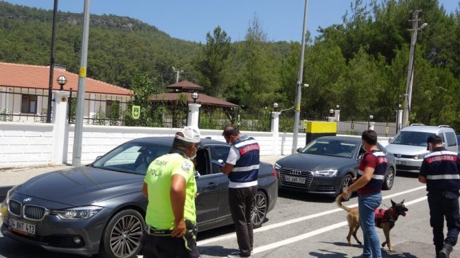 Marmaris-Muğla Karayolu'nun 21'inci kilometresinde bulunan kontrol noktasını ziyaret eden Marmaris Kaymakamı Ertuğ Şevket Aksoy, jandarma ekiplerini denetleyerek...