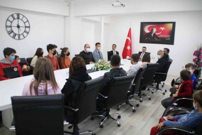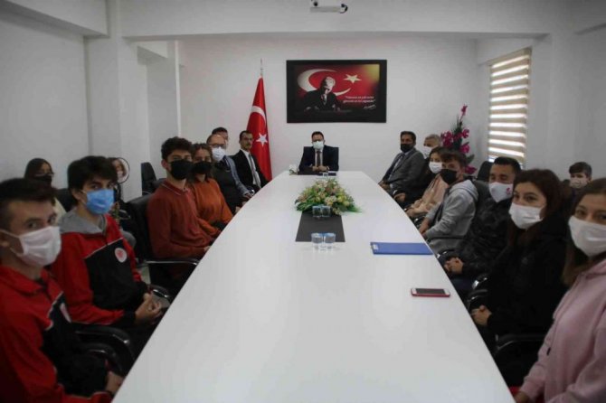 Kaymakam Alkan ilkokul, ortaokul ve lise kademelerindeki sporcu öğrenciler ile tek tek tanışırken birbirinden farklı spor dallarında başarı elde edenleri tebrik etti. Ziyarette bulunan öğrenci ve öğretmenlerin kendisinden bir talebi olup olmadığını sormasıyla açılan sohbette gelen talepleri dinledi. Snowboard sporuyla uğraşan sporcuların Gediz'in kendine özel bir kayak kıyafetinin olması için destek istedi. Kaymakam Hakan Alkan bu fikrin Gediz adına farkındalık oluşturacağını belirterek ilgili kişileri bu konuda görevlendirdi.