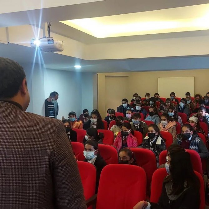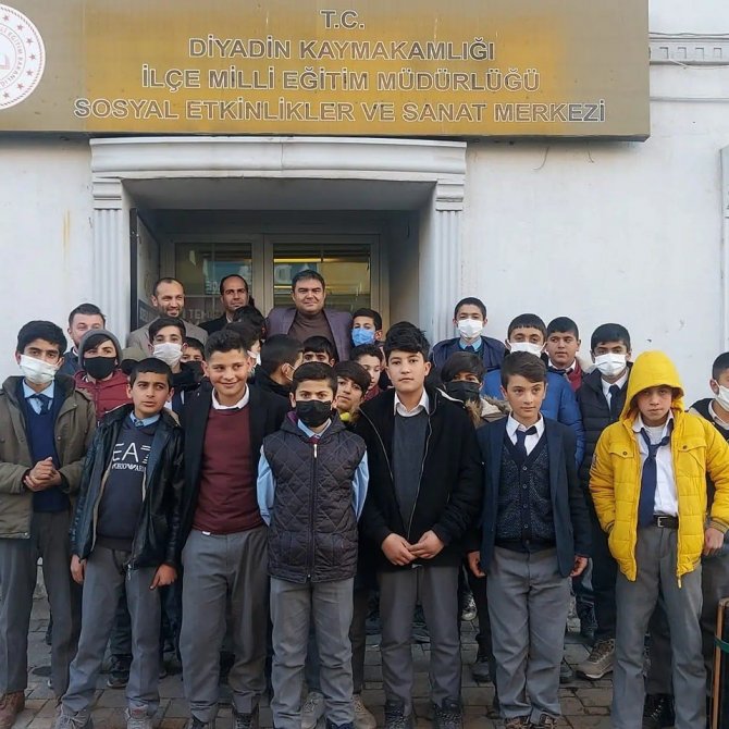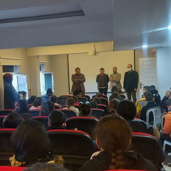Diyadin Kaymakamı ve Diyadin Belediye Başkan Vekili Alper Balcı öğrencilerle Diyadin Belediyesi Gençlik, Kültür ve Sanat Merkezindeki cep sinemasında film...