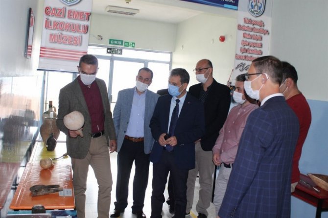 Kaymakam Çiçek, dikiş nakış kurslarının verildiği sınıfları gezerek, usta öğretici ve öğretmenlerden bilgiler aldı. Kursiyerlerin çalışmalarını inceleyip, onlara kolaylıklar diledi, ihtiyaç ve taleplerini sordu. Üretilen ürünleri inceleyerek kursların ev ekonomisi için faydalı olduğunu belirtti. Kaymakam Çiçek, Gazi Emet İlkokulunda ayrıca okul müzesini ve bahçe bakım atölyesi çalışmalarını yerinde inceleyip, ilgililerden bilgiler aldı. İhtiyaç ve taleplerini dinledi.