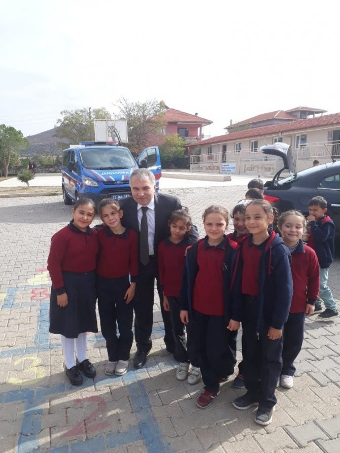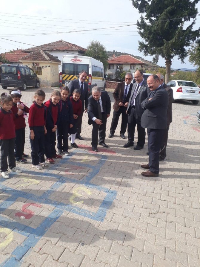 Kula Kaymakamı Kemal Duru, Kızılay Haftası kutlama programı için gittiği Sandal Cumhuriyet Ortaokulu’nda, bahçede minik öğrenciler ile birlikte sek sek oynadı.