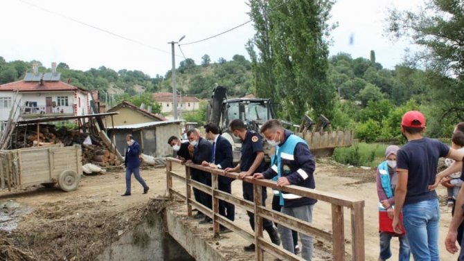 Hisarcık Kaymakamı Buğra Karadağ, Hasanlar köyünde yağan şiddetli yağmur ve dolu sonucu oluşan selin köylülere ve arazilerine vermiş olduğu zararı yerinde inceledi.