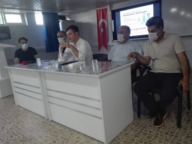 Elazığ'ın Kovancılar ilçesinde kurum kuruluş müdürleri, imam ve muhtarlara yönelik Covid-19 pandemi salgını ile mücadele ve değerlendirme toplantısı düzenlendi. Toplantıda İlçe Kaymakamı Karaloğlu, katılımcılara ilçedeki aşının yüzde 31'lerde olduğunu ve salgının yayılmasının önlemek için bunun daha da üst sevilere çıkarılması gerektiği noktasında bilgilendirmelerde bulundu.
