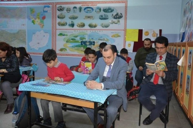 Atatürk İlkokulu 3/B sınıfında öğrencilerin aile fertleriyle kaynaşmalarını ve birlikte kitap okumalarını sağlamak amacıyla gerçekleştirilen kitap okuma etkinliği bir ders saati boyunca sürdü. Etkinliğe Kaymakam Erkut Pamuk da daire müdürleriyle birlikte katıldı.