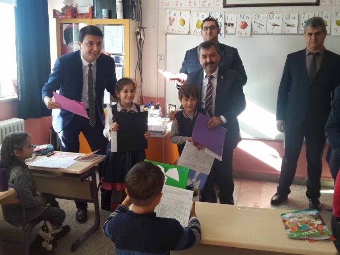 Karnelerini Kaymakam Temurci ve Başkan Erdoğan’ın elinden alan öğrenciler büyük heyecan yaşadılar.