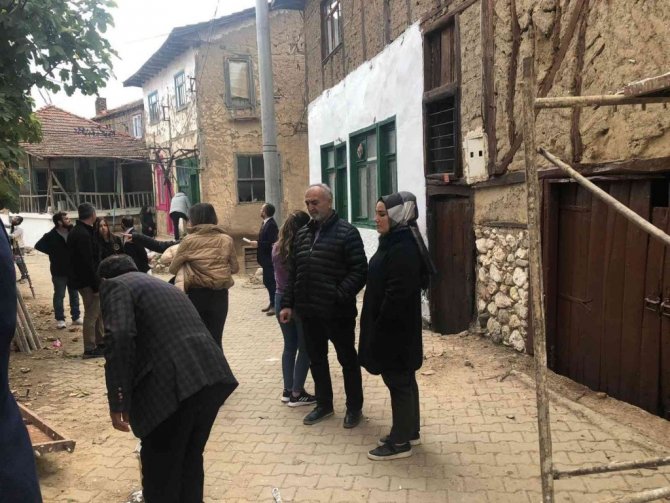 Bilecik'in İnhisar ilçesinde bir proje kapsamında kaymakam ve belediye başkanı fırçayı eline alarak, camları boyadı