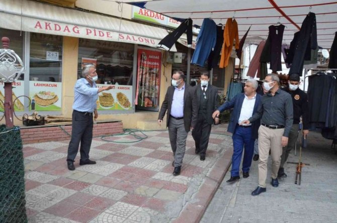 Emet Kaymakamı Hasan Çiçek, Emet Belediye Başkanı Hüseyin Doğan ve Hisarcık Belediye Başkanı Fatih Çalışkan, ilçe pazarını dolaşarak esnafların pazar yerleri ile ilgili taleplerini dinlediler.