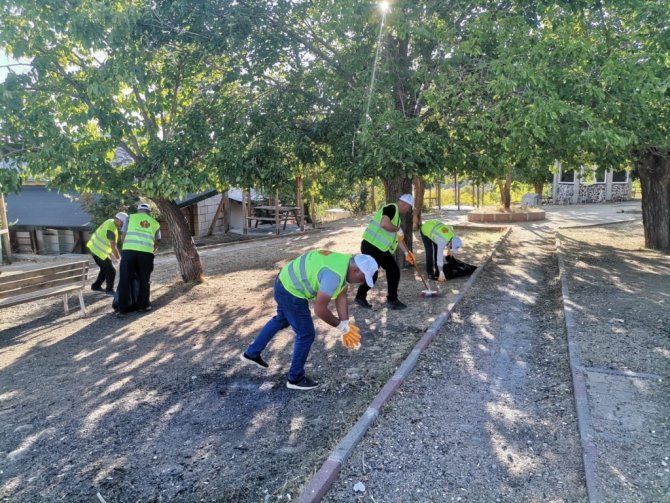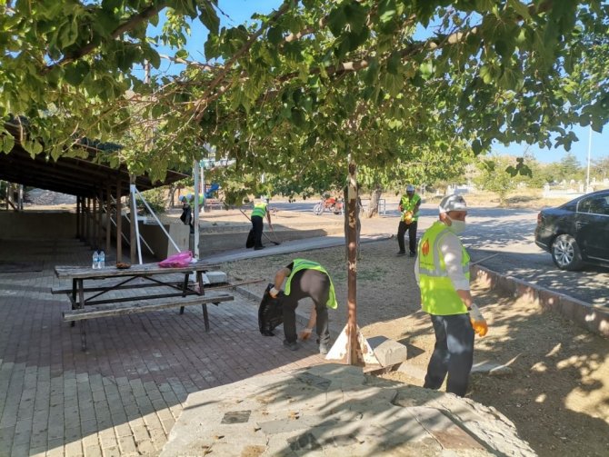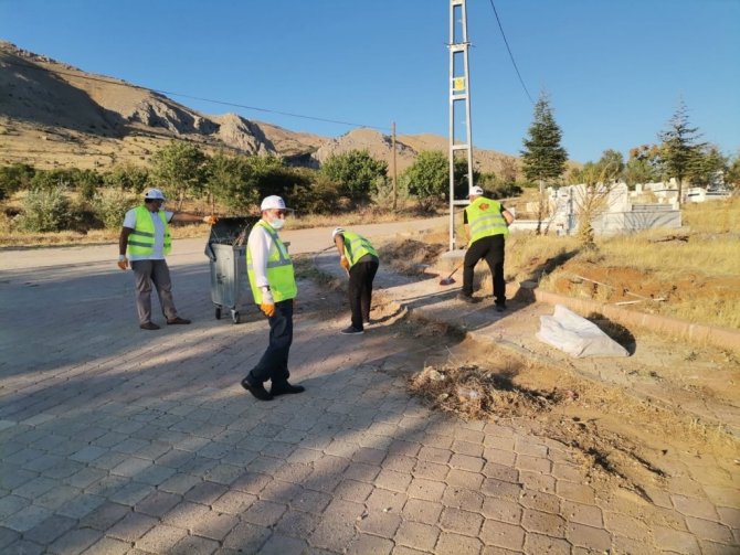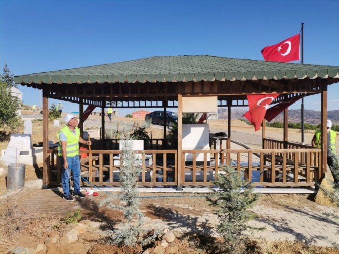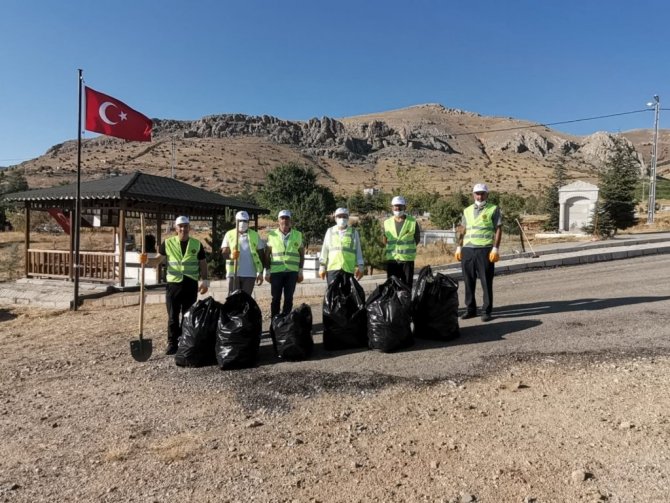 Elazığ'ın Baskil İlçe Kaymakamı Mahmut Sami Yılmaz ve kaymakamlık personelleri, şehit Fethi Sekin'in kabri ve Hacı Hasan Baba türbesi etrafında temizlik...