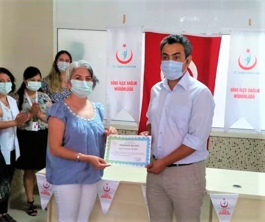 Söke İlçe Kaymakamı Soner Zeybek, Söke İlçe Sağlık Müdürlüğü filyasyon ekinine başarı belgesi verdi, teşekkür etti.