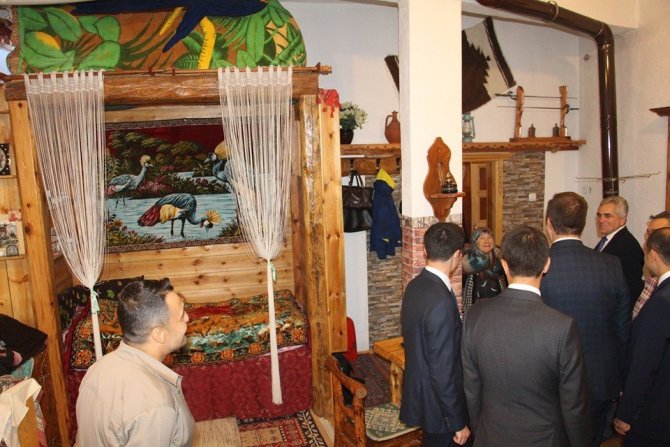 Kaymakamlar, ahşap sanatçısı Karaçam’ın eserlerini inceledi