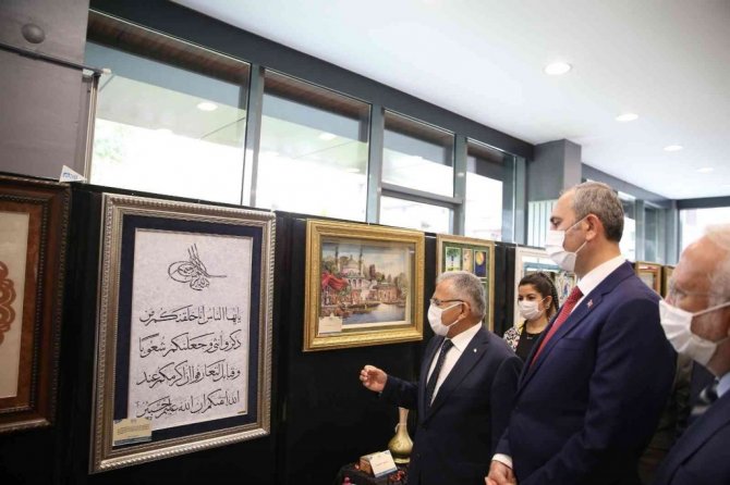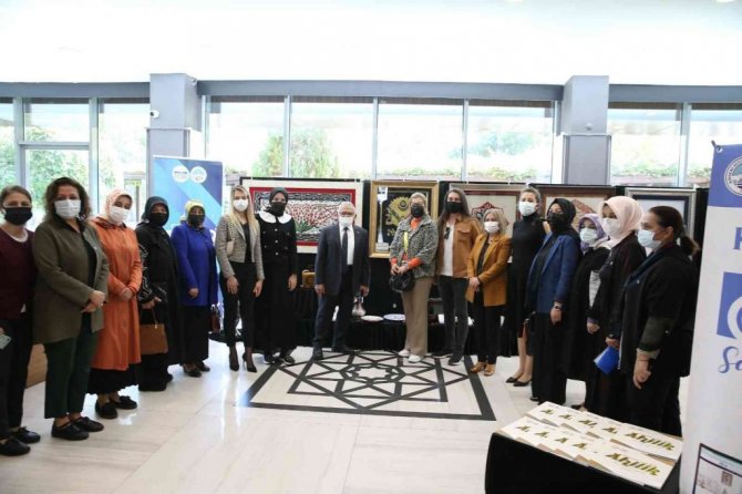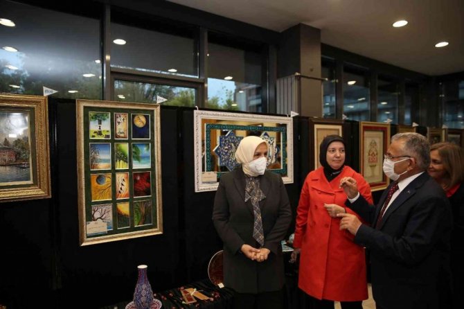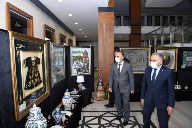 Kayseri Büyükşehir Belediyesi bünyesinde faaliyet gösteren KAYMEK kursiyerleri tarafından el emeği göz nuru ürünlerin sergilendiği "E-38 Sanat Sergisi'ne yoğun ilgi gösteriliyor.