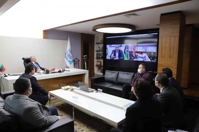 Kayseri Büyükşehir Belediye Başkanı Dr. Memduh Büyükkılıç, kardeş şehir Misurata'nın Belediye Başkanı Mahmoud Sgutri ile video konferans yöntemiyle...