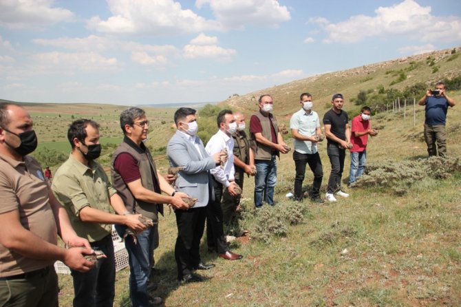 Kayseri'nin Pınarbaşı ve Sarız ilçelerinde 550 keklik doğaya bırakıldı.