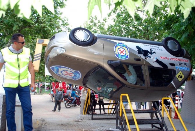 Simülasyon aracına binen İlçe Emniyet Müdürü Sayım Başaran, kaza anında emniyet kemerinin ne kadar önemli olduğunu göstermek amacıyla aracı buraya getirttiklerini söyledi. Amaçlarının emniyet kemeri kullanımını sağlamak olduğunu belirten Başaran, “İnşallah bu kazalar olmaz, ama olduğu zamanda, kemerin ne kadar önemli olduğunu burada görüyorsunuz. Emniyet kemerinin öneminin, öğrencilerimiz olmak üzere, tüm toplumumuza yaymamız gerekir” dedi.