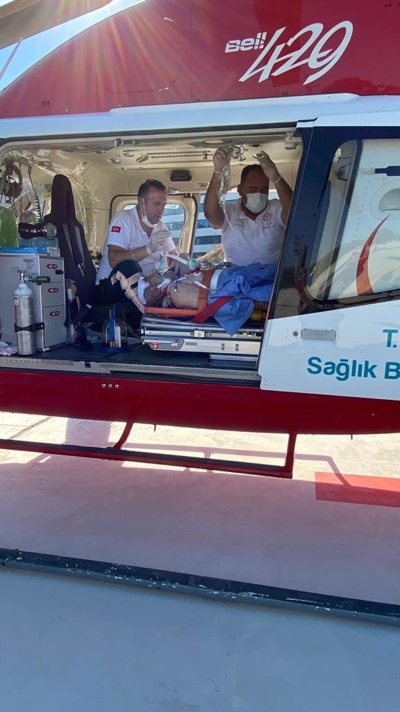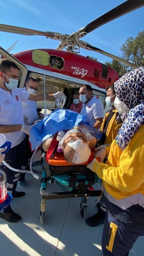 Kazada yaralanan şahıs ambulans helikopterle İstanbul’a sevk edildi