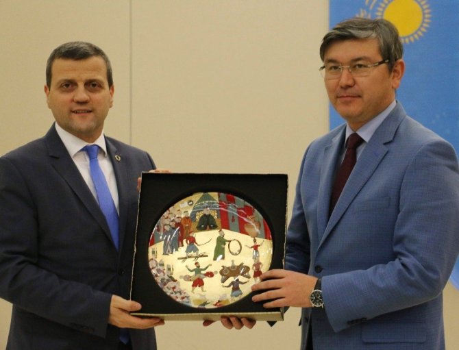 “Ahmet Yesevi Üniversitesi biliyorsunuz 1991 yılında daha Kazakistan’ın bağımsızlığından önce Cumhurbaşkanı Nursultan Nazarbayev tarafından Türk İslam Devlet Üniversitesi olarak kurulmuştur. 850 yıl önce bütün o coğrafyaya adeta ışık saçan Hoca Ahmet Yesevi’nin kurmuş olduğu medrese yeniden inşa edilmiş oldu. Bugün Anadolu’da Türklük varsa, Müslümanlık varsa bu üniversitemizin adının olduğu değerli büyüğümüz Hoca Ahmet Yesevi sayesindedir. Fars dilini bilmesine rağmen Türkçe’yi sevip söyleyen Hoca Ahmet Yesevi, 850 yıl önce adeta bugüne hitap ediyor. Bizler de gerek Türkiye’de, gerek Kazakistan’da, gerekse dünyanın değişik yerlerinde büyüğümüzü anmak için 2 yıl içerisinde 410 faaliyette bulunduk.”