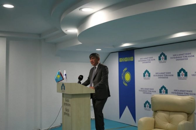 Kazakistan Cumhuriyeti'nin Ankara Büyükelçisi Saparbekuly, Ahmet Yesevi Üniversitesi Mütevelli Heyet Başkanlığı Türk Dünyası Araştırma Topluluğu tarafından düzenlenen programda öğrencilerle buluştu. Büyükelçi Saparbekuly, "16 Aralık'ta Kazakistan Bağımsızlık Meclisi bağımsızlığı ilan ettiğinde Türkiye 1 saat içerisinde Kazakistan'ın bağımsızlığını tanıdığı bir nota gönderiyor. Siz de duyabilirsiniz Kazakistan'ın bağımsızlığını tanıyan ilk ülke Amerika'dır diye. O da gelip misyon açan Amerika olduğundan dolayı. Bir saat içerisinde meclisi toplayıp böyle bir karar almak çok hızlı bir karar" dedi.