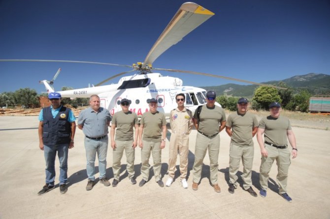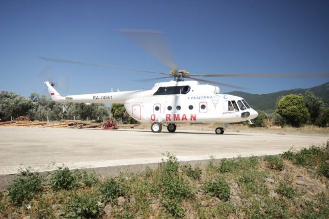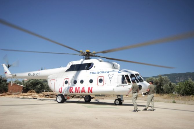 Yangın ihbarı yapıldıktan sonra 10 dakikada havalanan ve bambi denilen özel aparatı ile 3 ton suyu yangın alanına taşıyabilen helikopter ekstra yakıt tankları ile 5 saat havada kalabiliyor. Helikopterin Türk pilotu Alperen Aydın, "7 yıldır orman yangınları ile mücadelede çalışıyorum. Helikopterimiz 2020 model bir helikopter. Kendi ağırlığı 14 ton. Bambi olarak isimledirdiğimiz alttaki su haznesi 3 ton su alıyor. Bir orman yangınlarına bir seferde 3 ton su atıyoruz. En yakın su kaynağı neredeyse oradan suyu alıp hızlı bir müdahale ile yanın büyümeden müdahale etmek amacıyla uçuyoruz" dedi.