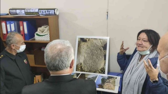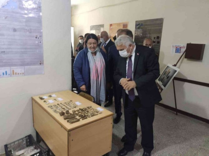 Tekirdağ Valisi Aziz Yıldırım da kazı alanından çıkan eski malzemeleri inceleyerek, Kazı Başkanı Zeynep Koçel Erdem'den bilgi aldı.