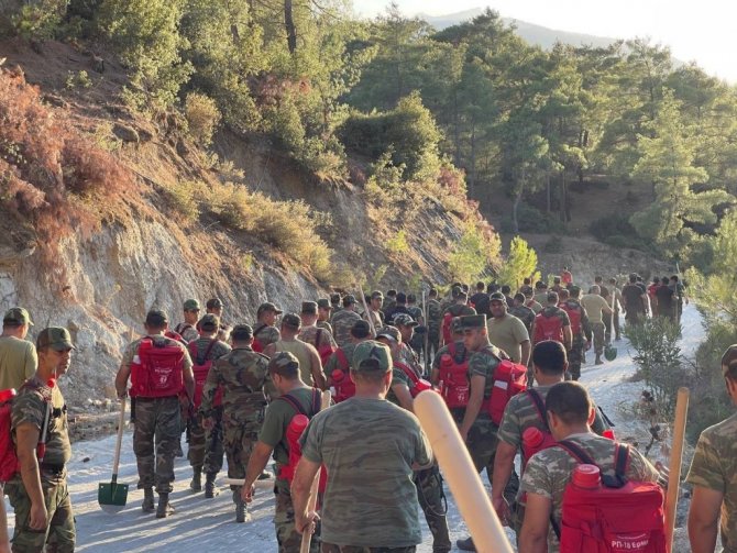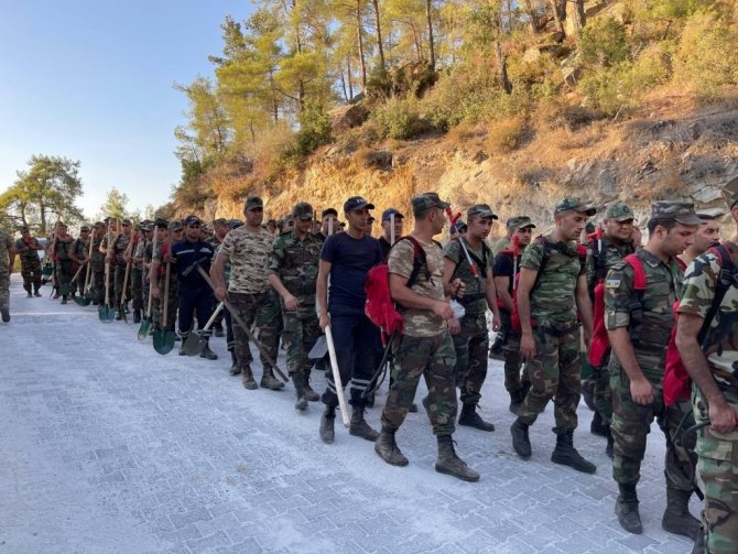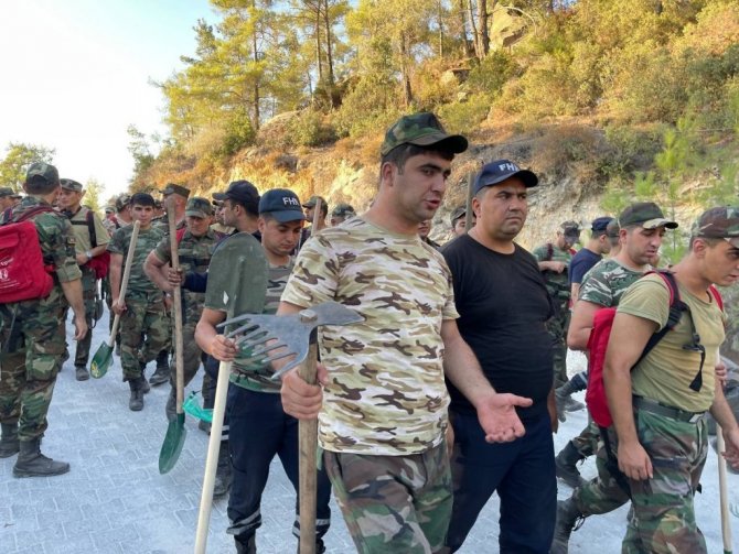Türkiye'de meydana gelen ve günlerdir devam eden orman yangınlarını söndürmeye destek vermek için Azerbaycan'dan gelen birlikler kazma-kürekle içtimaya girip yangından yangına koşuyor.