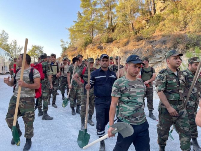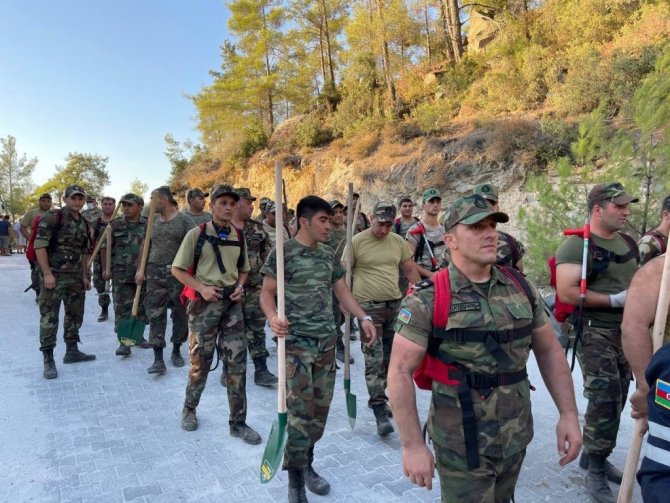 Azerbaycan Cumhurbaşkanı İlham Aliyev'in talimatlarıyla Türkiye'deki yangın söndürme çalışmalarına destek için 93 araç ve 1 helikopter ile Türkiye'ye gönderilen 710 kişilik ekip yangından yangına koşuyor. Aydın'ın Çine ilçesine bağlı Akçova'nın üzerinde bulunan Gökbel Dağı'ndaki yangını söndürme çalışmalarına destek vermesi için bölgede görevlendirilen 200 kişilik ekip başlarındaki komutanlar nezaretinde ellerindeki kazma kürek ve sırtlarındaki söndürme aparatları ile içtimaya girip görevden göreve koştu. Aynı dili konuştukları Türkiye'deki halkla diyalog kurmakta hiç sıkıntı yaşamayan "gardaşlar" bir yandan söndürme çalışmalarına destek verip diğer yandan iki ülke arasındaki dostlukları pekiştirdiler.