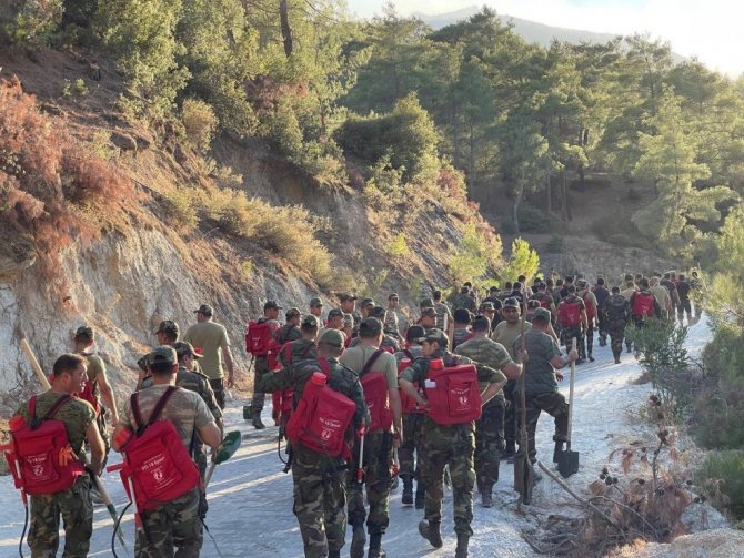 Ege'nin dağlarında Azerbaycanlı "gardaşlar'ın alevlerle mücadelesi göz dolduruyor.