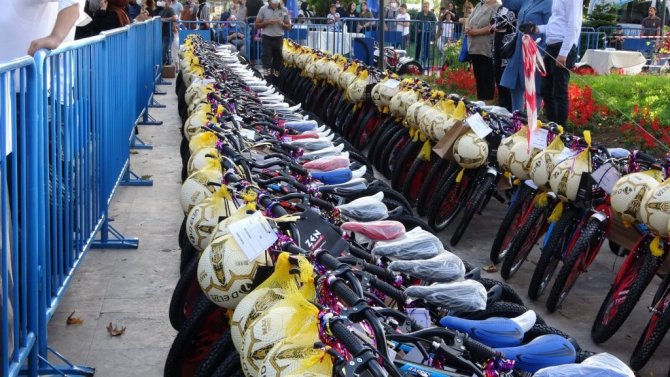 Başkan Posbıyık, protokol ile birlikte şölen sonunda çocuklara bisiklet, top ve kol saatinden oluşan sünnet hediyesi dağıttı.