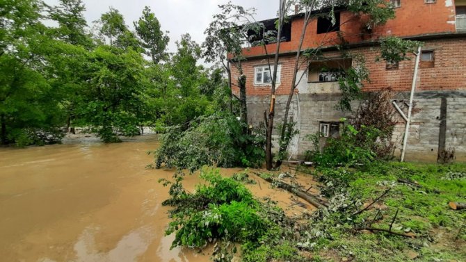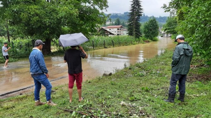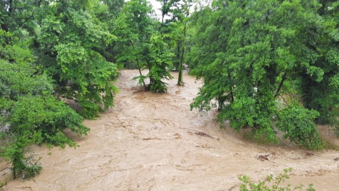 Alaplı ilçesinde ise Dağ köyündeki derenin taşması sonucu tarım arazileri sular altında kaldı.