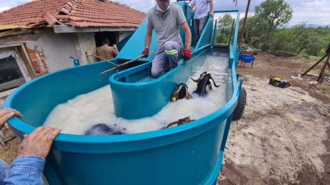 Keçi peyniri projesi için alınan küçükbaş hayvan yıkama ve ilaçlama makineleri hizmete girdi