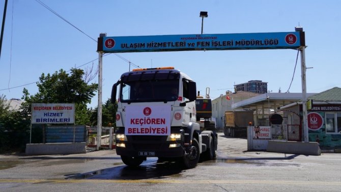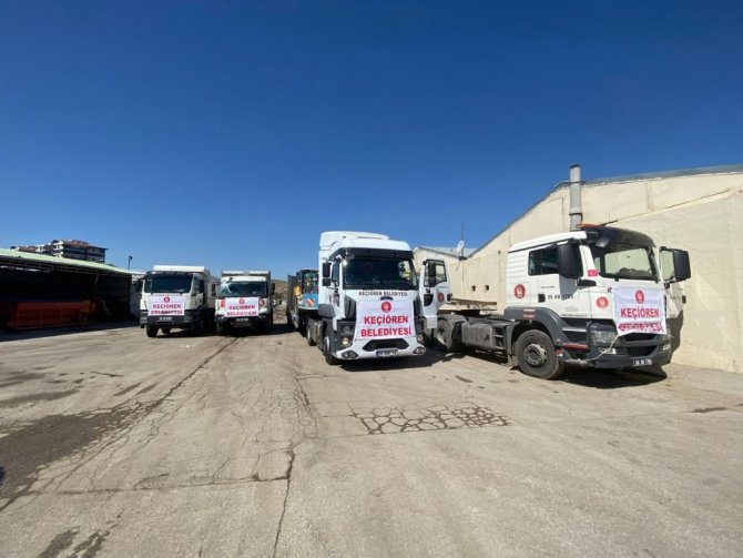 Keçiören Belediyesi afet bölgelerine 7 iş makinesi ve bir tır dolusu içme suyu sevk etti