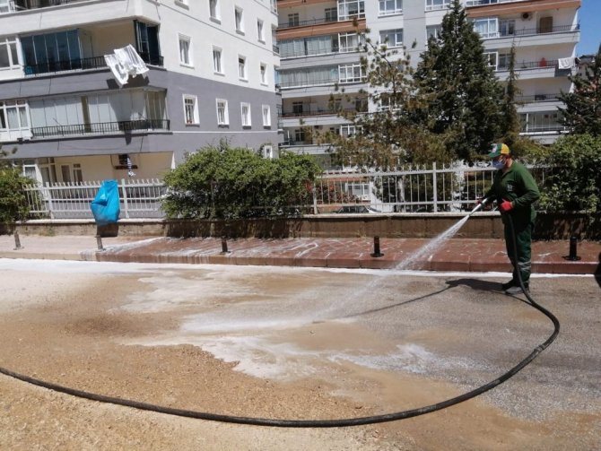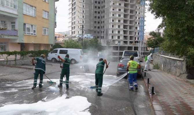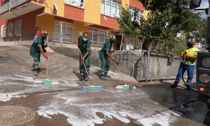 Ankara Keçiören Belediyesi Temizlik İşleri Müdürlüğü tarafından ilçedeki 51 mahallede yürütülen detaylı temizlik çalışmaları kapsamında mahallelerin tamamı içerisinde gül suyu bulunan köpük ile yıkandı.