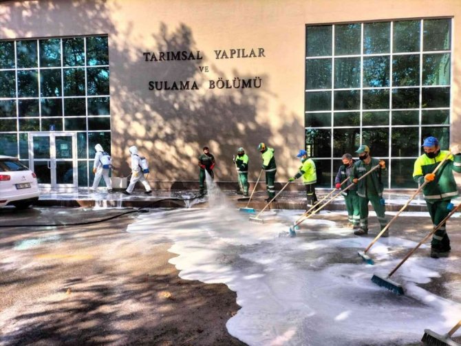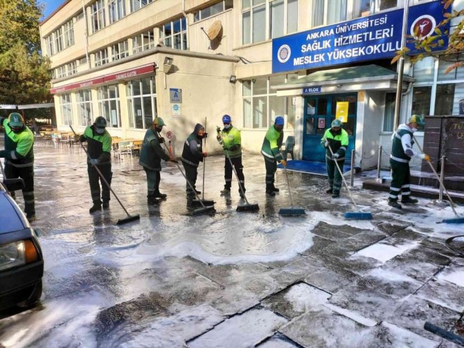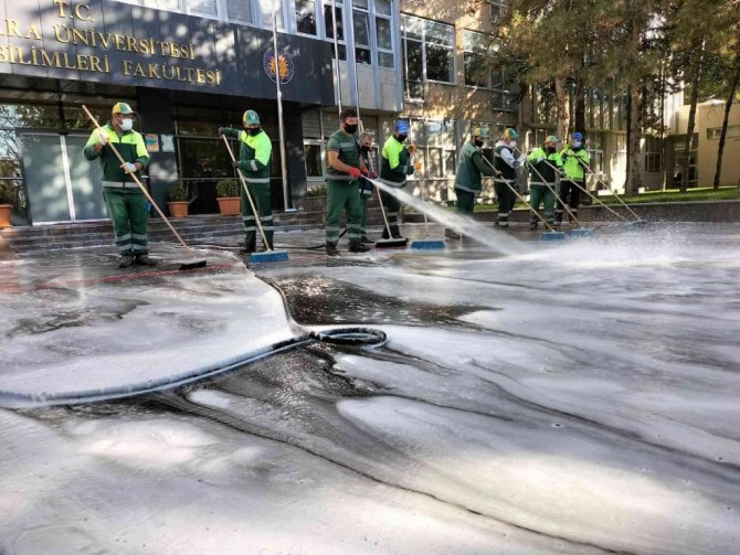 Keçiören'de bulunan üniversite kampüsleri hem temizleniyor hem de dezenfekte ediliyor.