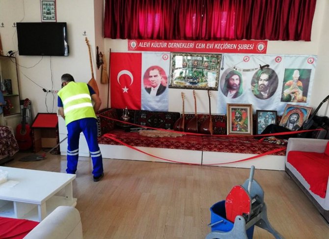Keçiören Belediyesi, ilçede bulunan yaklaşık 300 ibadethanede rutin temizlik çalışmalarını sürdürüyor. Cami, mescit ve cemevlerindeki temizlik ve dezenfekte çalışmalarıyla vatandaşlar daha sağlıklı bir ortamda ibadet etme imkanı buluyor. Ekipler ayrıca okullarda bulunan mescitlerde de aynı çalışmaları yürütülüyor.