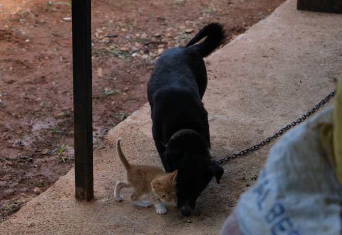 Kedi yavrularına bakıcılık yapan köpek yürekleri ısıttı