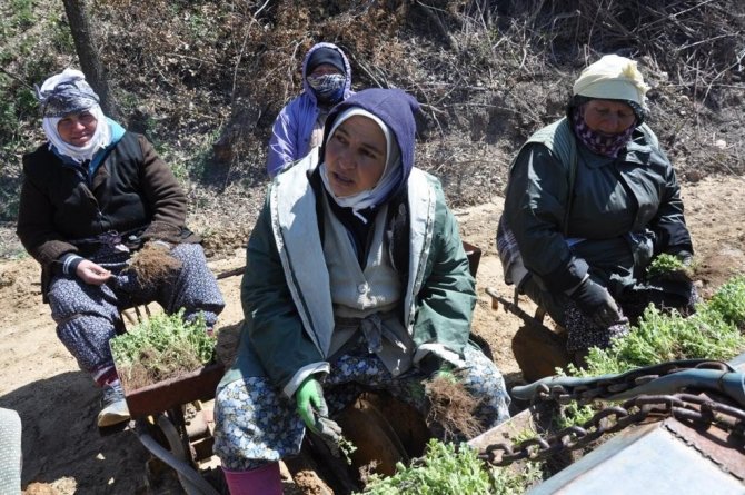 Kekik dikiminde son fidanlar toprakla buluşuyor
