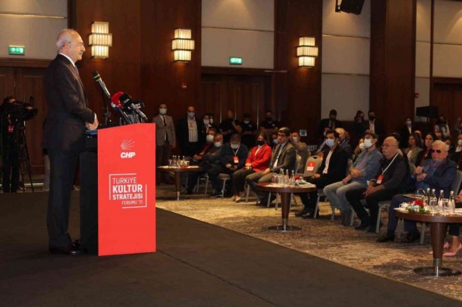 Türkiye Kültür Stratejisi Formunda konuşan Kılıçdaroğlu, "Bize düşen görev size danışmaktır. Bir belge hazırlıyorsak ve biz gerçekten gelmeyi düşünüyorsak sizin bu konuda görüşlerinizi bu konuda görüşlerinizi almak zorundayız. İktidara geldiğimiz de yanlış bir adım atmayalım. Hatalı bir adım atmayalım. Sanat dünyasıyla bir kavga ortamı oluşturmayalım. İktidara geldiğimizde ki inşallah geleceğiz, o zaman sağlıklı bir sanat ve kültür politikası oluşturmak zorundayız. Sanatın ve kültürün olmadığı bir ülke çöldür. Tek bir ağacın bile olmadığı, tek bir yeşilliğin bile olmadığı bir çöldür. Çölün de kendine özgü bir kültürü vardır. Onu da biliyorum. Ama biz isteriz ki hayatın bütün türlerini, doğanın bütün türlerini kendi ülkemizde bulalım" dedi.