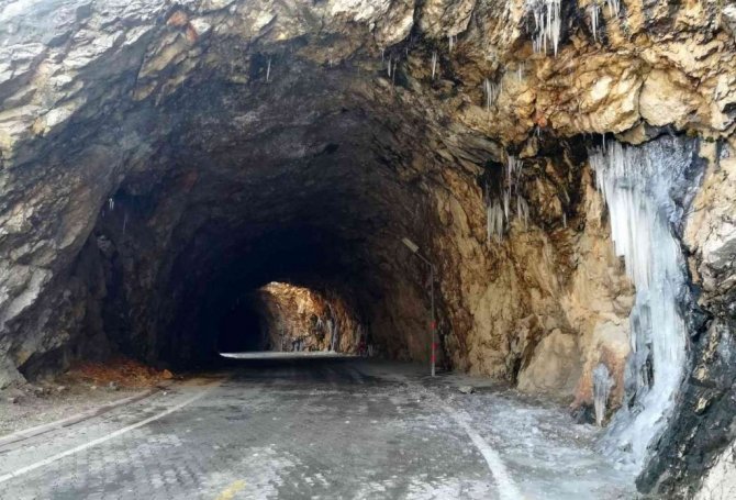 Aşırı soğukların etkili olduğu bugünlerde Taş Yolu buz tuttu. Tüneller içerisinde oluşan buz sarkıtları fotoğraf severlerin akınına uğradı.