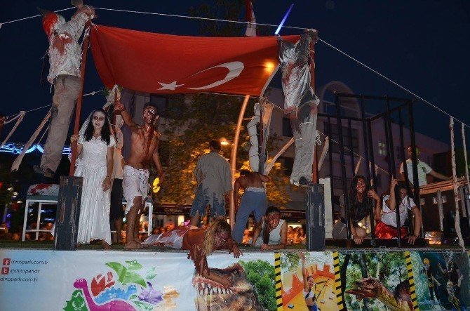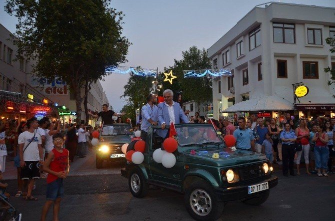 Kortej sırasında bölgedeki turistik tesisler ile eğlence merkezlerinin hazırladıkları dans gösterileri ve şovlar renkli görüntüler oluşturdu. Yürüyüşü, yerli ve yabancı turistler ilgiyle izledi. Yürüyüş sonrası ilçe stadında sahneye çıkan sanatçı Hasan Yılmaz, konser verdi. Yaklaşık bir saat sahnede kalan Yılmaz, seslendirdiği oyun havaları ile izleyenlere eğlenceli anlar yaşattı. Yılmaz’ın ardından sahneye Bülent Ersoy çıktı. 2 saatlik konserinde sevilen şarkılarını seslendiren Bülent Ersoy’a izleyenler de zaman zaman eşlik etti.