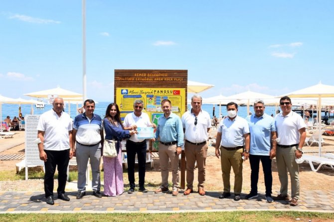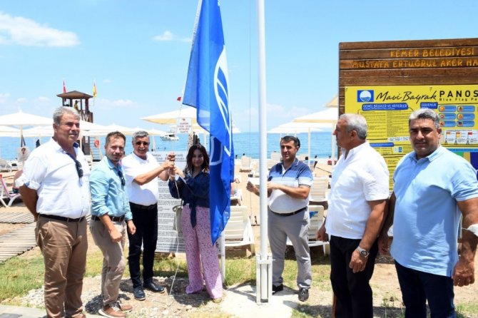 Konuşmaların ardından Başkan Topaloğlu ve beraberindekiler, plajdaki göndere mavi bayrak asarak, mavi bayrak sertifikasını aldı.