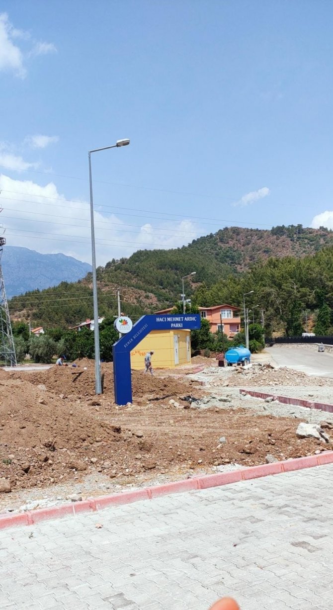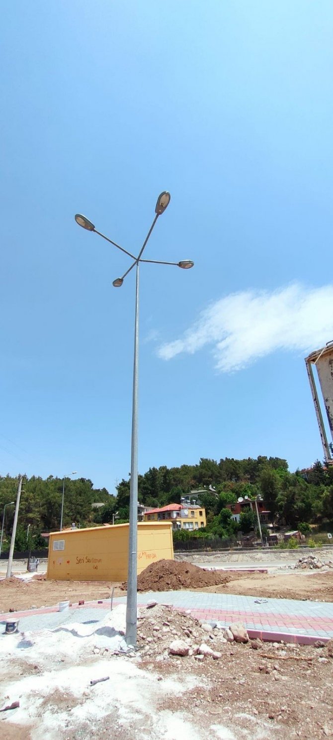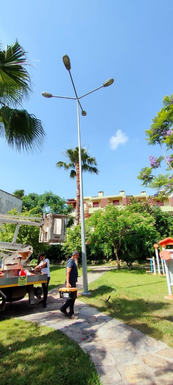 Kemer Belediyesi, ilçedeki parklarda aydınlatma çalışmaları yapıyor.